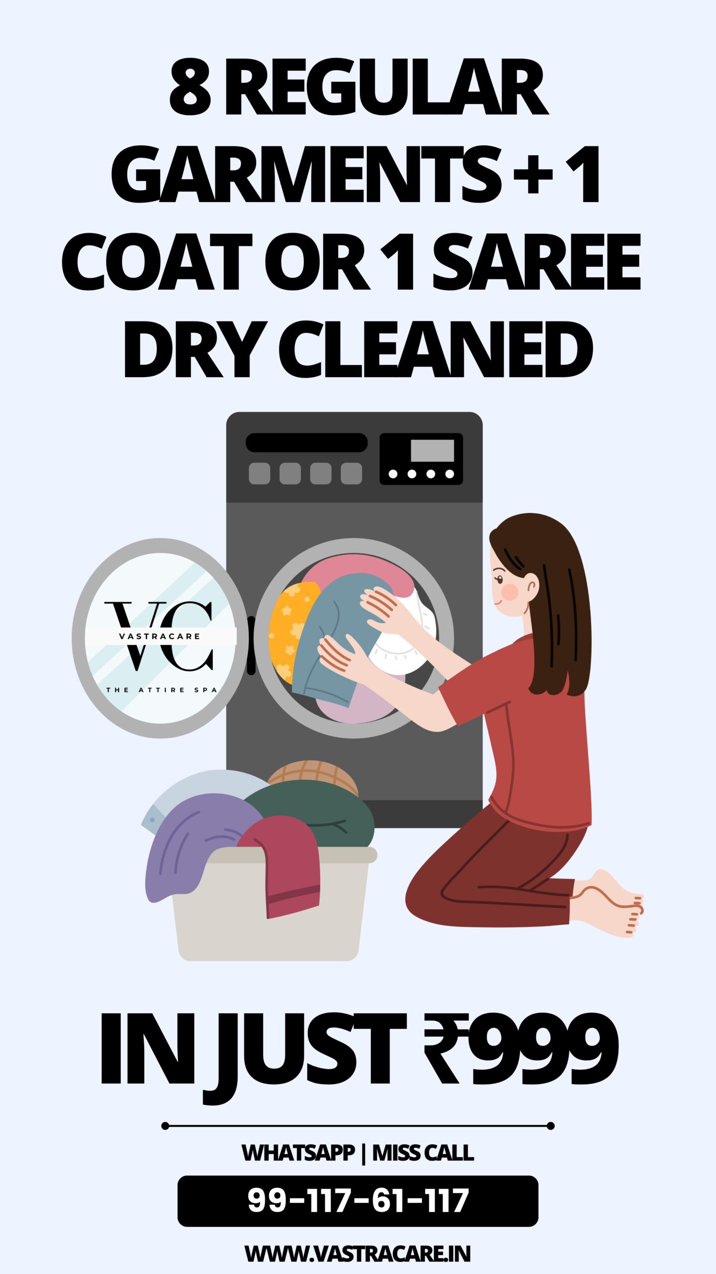Get your 8 Regular Wear + 1 ‘Coat’ or 1 ‘Saree’ Dry Cleaned in Just ₹999.